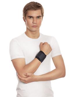 Фиксация происходит за счет широкой застежки с липучкой. Длина позволяет носить ортез как на взрослой, так и на детской руке.